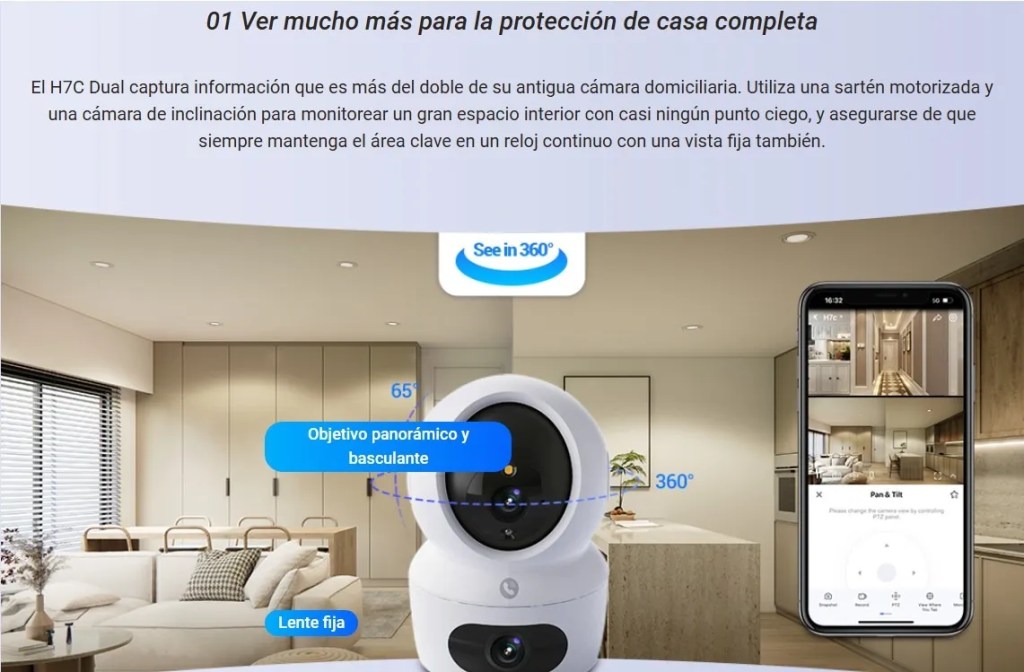 Gracias a su tecnología de doble cámara, permite cubrir más área y mejorar el seguimiento de movimiento, brindando una protección superior frente a cámaras tradicionales.